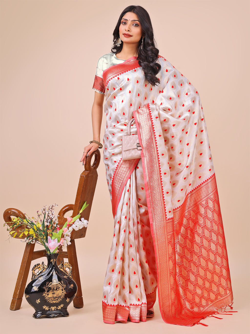 Saree Color  :- White