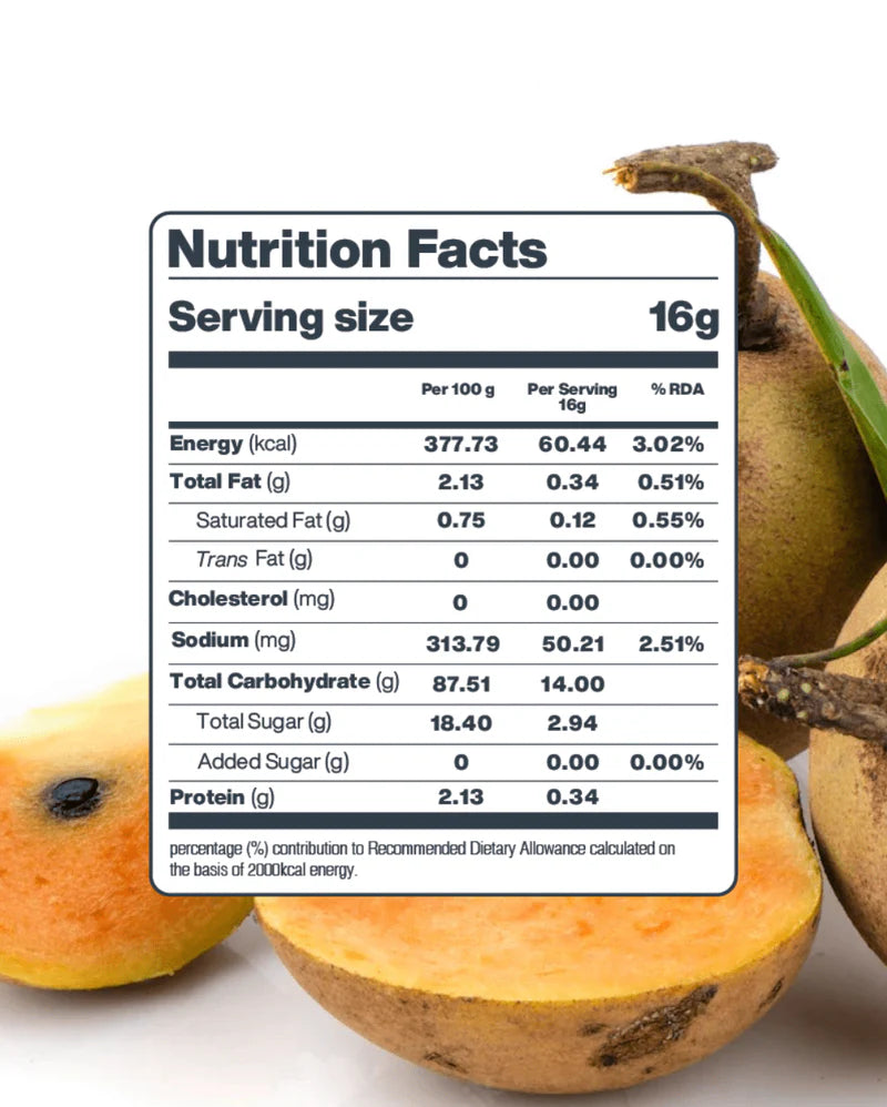Crisp and naturally sweet cubes made from real chikoo (sapodilla), freeze-dried to preserve authentic flavor and texture. Perfect as a convenient, standalone snack or a tasty add-in for cereals, smoothies, and more.