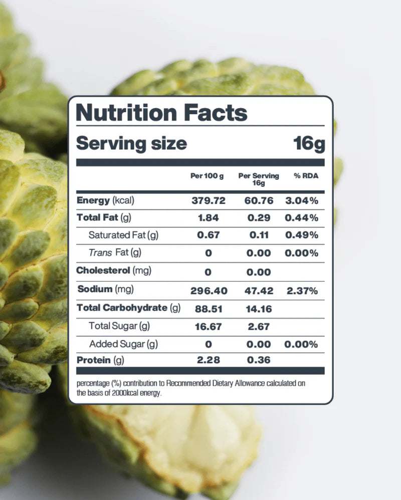 Love Custard Apples? Hate the hassle of having to take time off of your busy schedule to find them, and prepare them in a way that best suits you as well as wash up after you're done eating? We do too! That's why we've decided to make a convenient way for you to enjoy the taste, texture and nutritional benefits of the fruit without having to deal with the hassle. Freeze-dried custard apple cubes allow you to eat what you love when it's convenient for you!