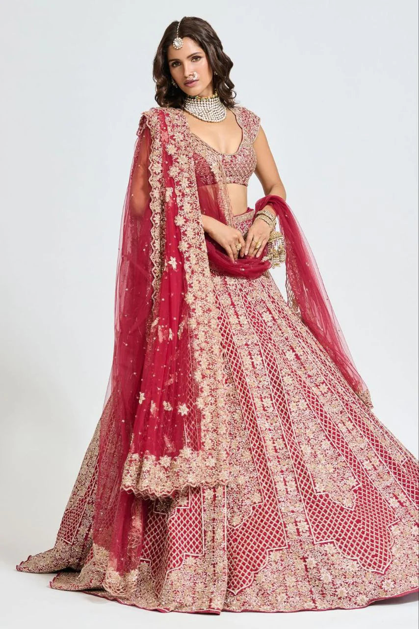 Red Color Satin Silk Wedding Wear Lehenga Choli