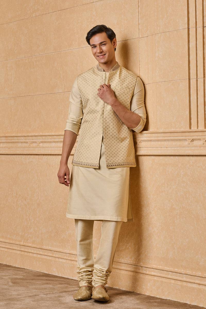 Tasva Woven Kurta Bundi Set with Embroidery Highlights