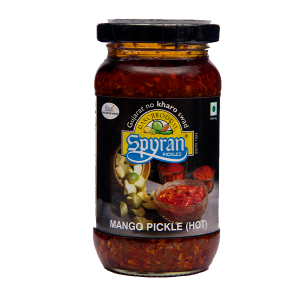 A: Our achars use a traditional achari masala of coriander, mustard, fennel, fenugreek, nigella, and Kashmiri chilli—each spice balancing heat, aroma, and mouthfeel.