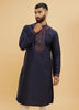 Midnight Blue Art Silk Kurta Churidar Set with Embroidered Neckline