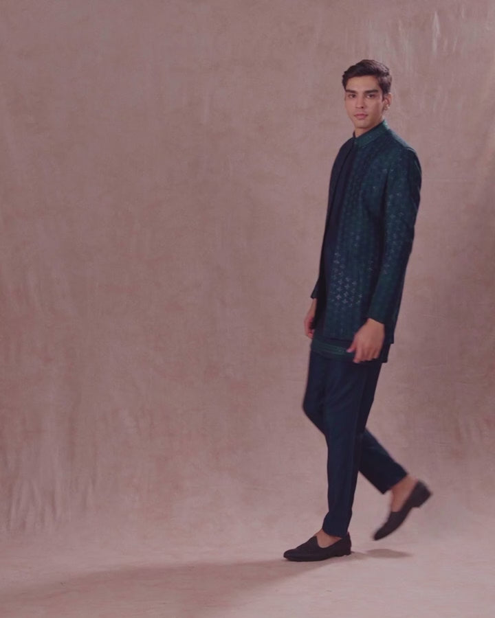 Teal Blue Indo Western Set with Jacket & Pant
