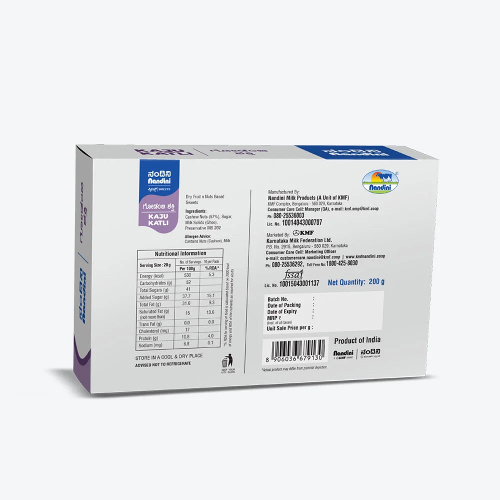 Nandini Kaju Katli is a classic Indian mithai made from premium-quality cashew nuts, blended with pure sugar and rich ghee to create a smooth, melt-in-the-mouth texture. Known for its delicate sweetness and authentic nutty flavor, this traditional sweet is finely crafted to deliver a luxurious taste in every bite. Perfect for festive celebrations, gifting, or indulgent moments, Nandini Kaju Katli reflects the true essence of Indian sweets with its soft consistency and rich aroma.