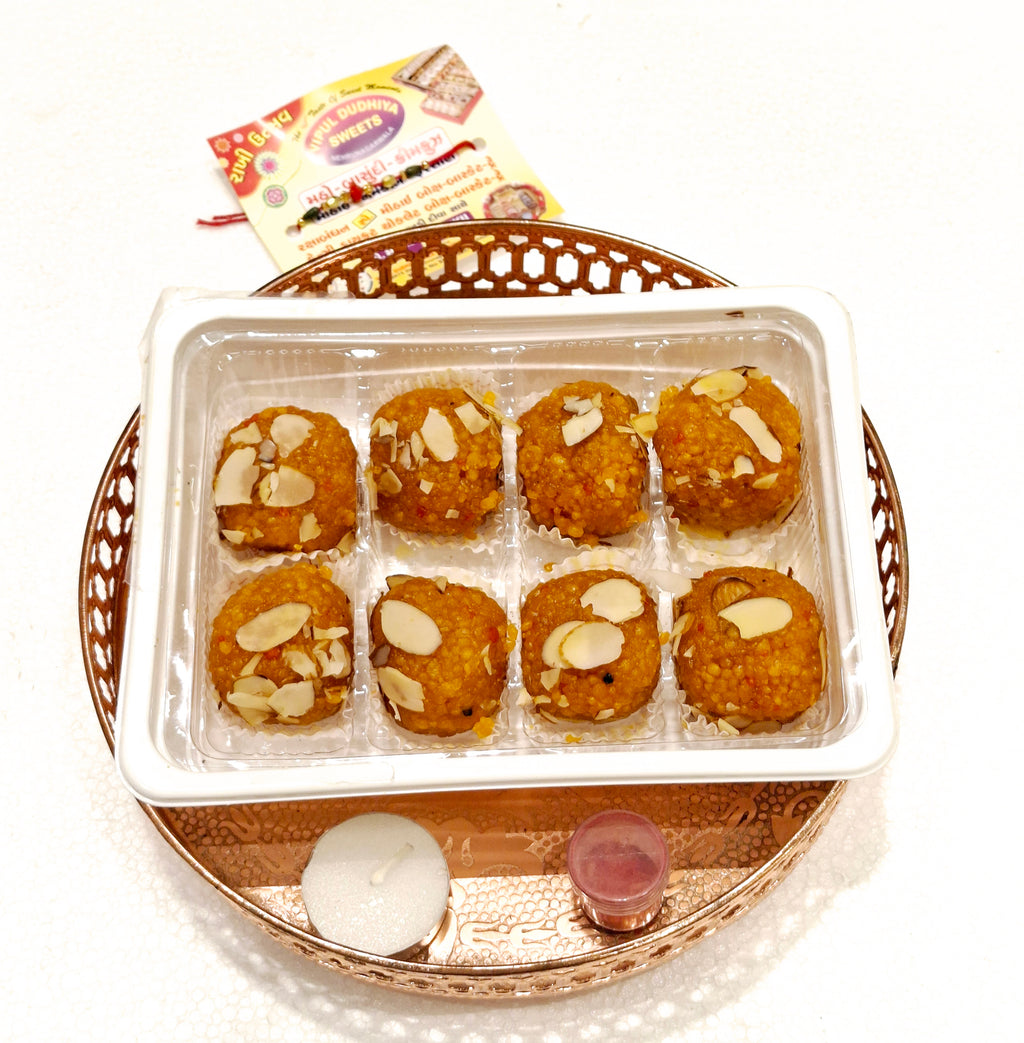 Ingredients : Gram flour, sugar, ghee, cardamom, edible camphor, saffron, nuts.