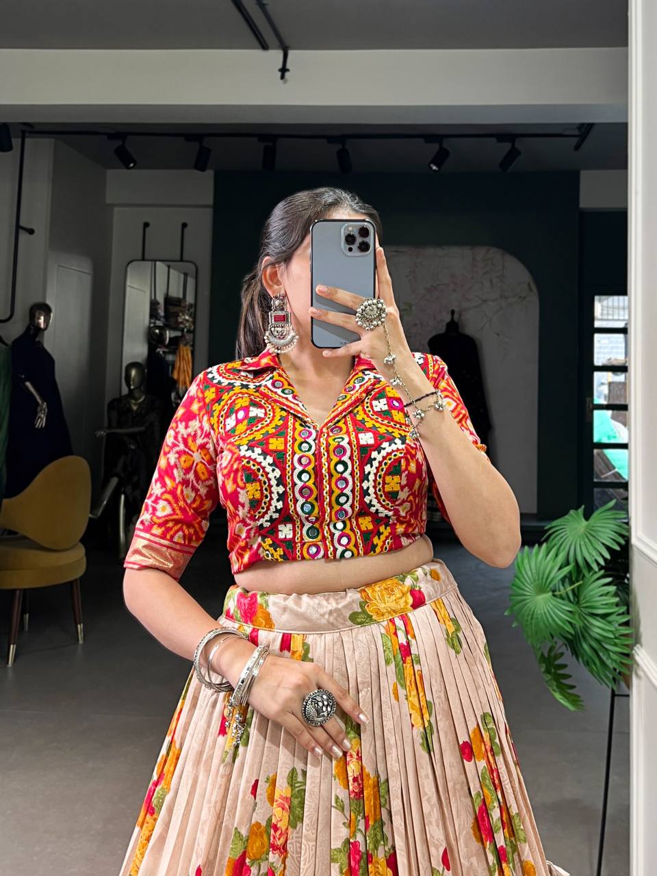 Latest Lehenga Choli With Floral Patola Print And Foil Work | Ready To Wear