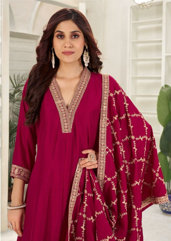 "Pure Vichitra Silk Suit Featuring Heavy Embroidery on the Collar and an All-Over  Embroidered Dupatta with Intricate Border Detailing – A Perfect Ethnic Statement."