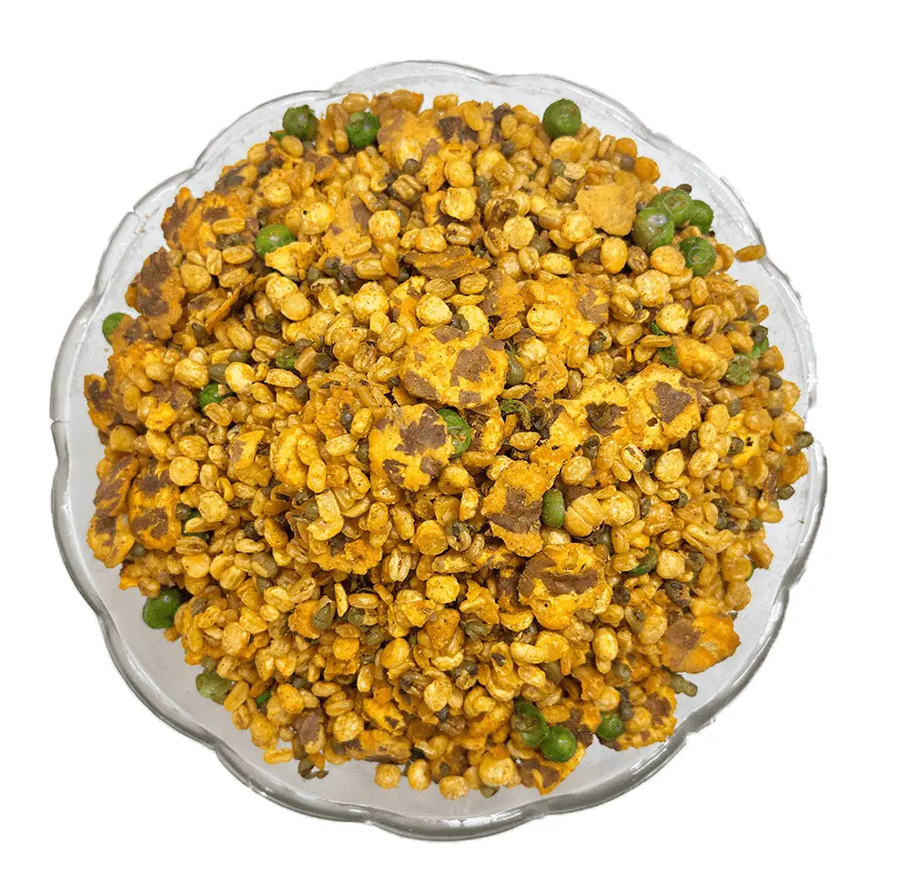 Enjoy the irresistible crunch and bold flavors of Mixed Kathore Snack Mix, a wholesome blend of roasted lentils and legumes. Made from high-quality chickpeas, green peas, moong dal, masoor dal, and other crunchy elements, this protein-rich snack is seasoned with a signature mix of Indian spices for a zesty, satisfying flavor in every bite.