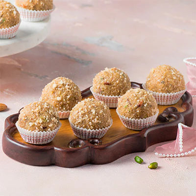 Shell Life : 20 Days                                                                                                                                                                                                                                                                      Ingredients : Wheat flour, ghee, gond, sugar, dry fruits, cardamom, melon seeds.