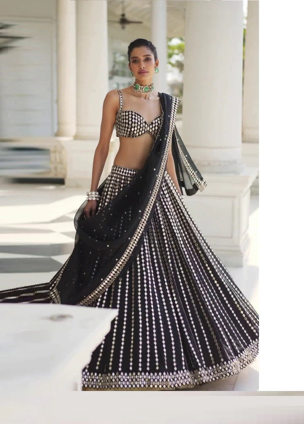 Black Lehenga Choli With Georgette Pepar Mirror Work | Ready To Wear