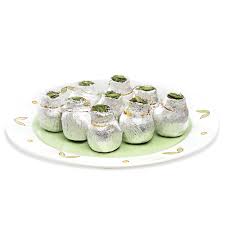 Ingredients : Cashew nuts, sugar, ghee, cardamom, pistachios, edible silver leaves.