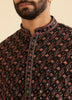 Style Tip: Pair this black kurta set with tan or silver juttis and a contrasting stole for a polished festive look.