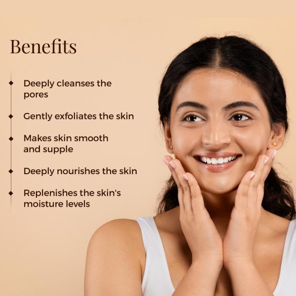This Facial Cleanser is a traditional blend of rich Black Sesame, Almonds, Pistachio and fresh Turmeric paste that deeply cleanses, while nourishing and replenishing the skin's moisture levels. This also contains natural hydrators like Buttermilk, Floral water & organic Honey to gently polish and make the skin smooth and luminous.