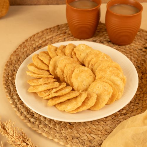 • Ingredients: Wheat flour, semolina, salt, carom seeds, chili powder, turmeric, edible oil