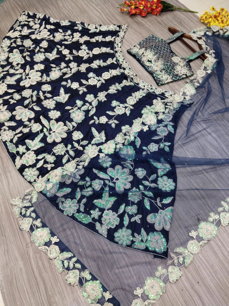 Lehenga : Premium Kasturi Silk Georgette Embellished With Heavy Thread Embroidery ,Dori And Heavy Rainbow Sequins Work With Heavy Cancan And Canvas With Double Inner Covering With Flair 3.5 MTR( Fully Stitched Upto Xxl )