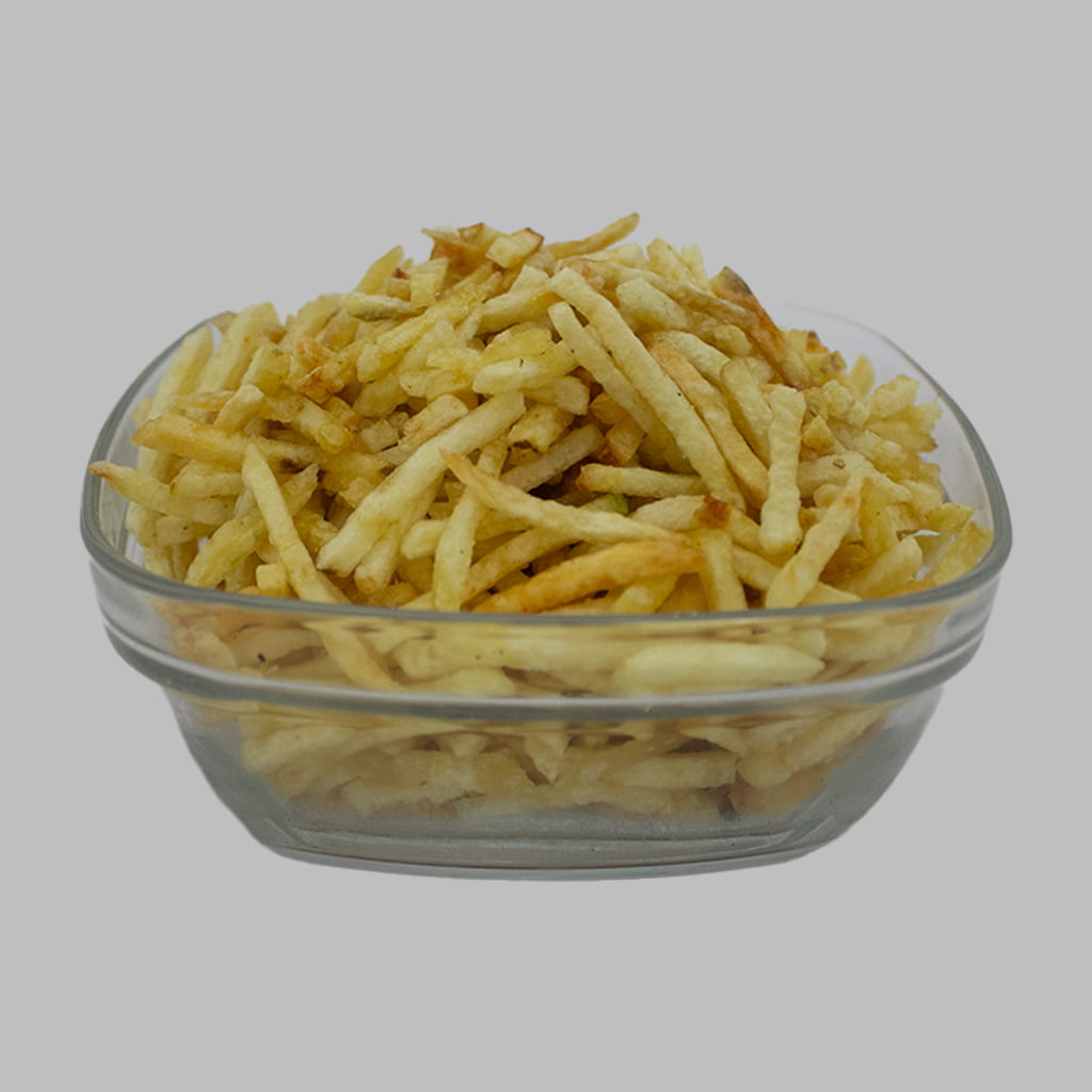Batata Sali is a savory Indian snack celebrated for its crispy and spicy potato straws. These fine potato shreds are meticulously crafted with premium ingredients, including fresh potatoes, spices, and expert frying techniques. Batata Sali offers a delightful blend of crispy satisfaction and a burst of spice that captivates the taste buds. They are a beloved snack often enjoyed for their zesty kick and crunchy texture, making them a popular choice for snacking and adding a spicy twist to your culinary adventures