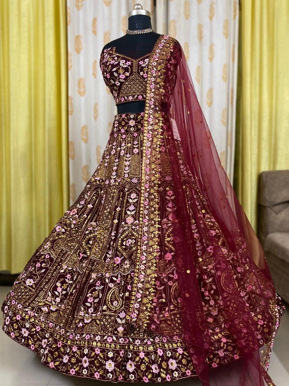 Maroon Lehenga Choli With Georgette Work | Ready To Wear