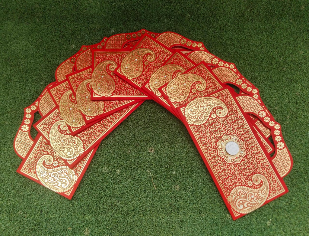 Multicolor Design envelopes , shagun envelopes.Can be used on the occasion of Diwali , Baby Shower , Rakhi , Birthday , Wedding , Mangal Pravesh.Closure type is double sided tape(Self Seal).These premium shagun envelopes are of good quality paper.Compatible with indian currency notes -Rs.2000/500/200/100. Note : Product color might slightly vary due to photographic lighting sources or your monitor brightness/contrast settings.Happy Purchase ! Random Colors will come as per availibilty. 1 packet will contain same color of 10 pieces.