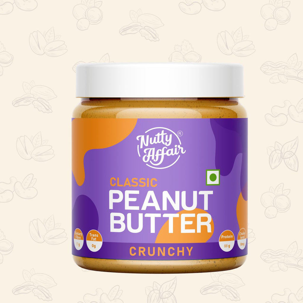 Indulge in Nutty Affair Peanut Butter Classic (Crunchy) 340 gms, a delicious blend of creamy, premium peanuts and pure honey. This irresistible spread adds a touch of sweetness to snacks and meals. Made with care, it's the perfect fusion of smooth texture and sweet goodness.