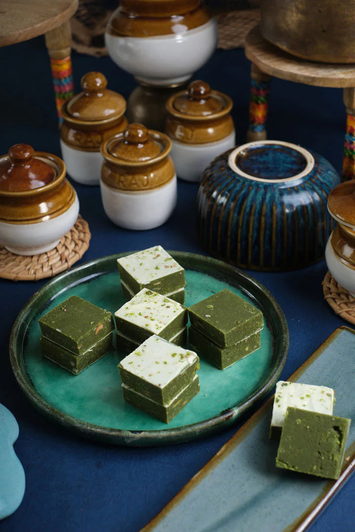 A luxurious sweet made from pistachios, condensed milk, and sugar, offering a rich, nutty flavor and a beautiful green color.