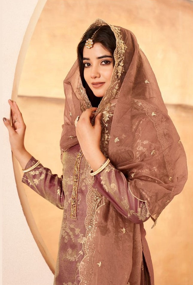 Elevate your ethnic collection with this Pure Heavy Jama Silk 3 Piece Suit Set in a rich dusty rust hue. Featuring intricate heavy embroidery on the neck and a beautifully crafted organza dupatta with all-over stylish work, this ready-to-wear suit blends luxury with tradition. The premium silk fabric offers a regal drape, perfect for festive events, weddings, and formal gatherings. Designed for comfort, durability, and timeless style — this set is a must-have for a refined ethnic look.