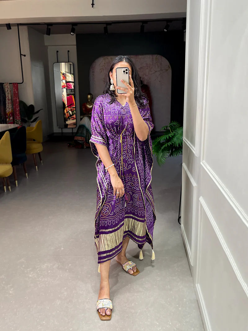 Purple Kaftan With Digital Print Work | Ready To Wear
