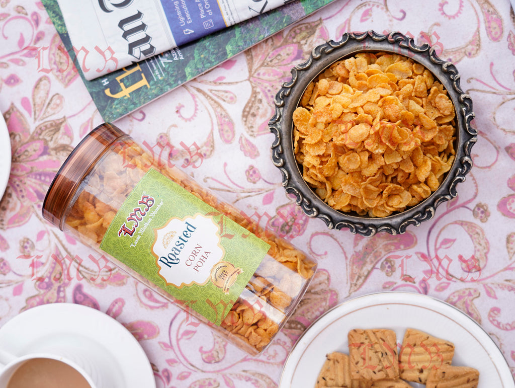 Experience the delightful crunch and flavor of Laxmi Misthan Bhandar's Roasted Corn Poha - 200gm. This crispy and flavorful snack is made from roasted flattened corn grains, offering a satisfying crunch and a unique taste. Packed with natural flavors and roasted to perfection, this snack embodies quality and taste. Whether enjoyed as a standalone snack or paired with beverages, elevate your snacking experience with this crunchy and delicious roasted corn poha. Order now and relish the flavorful crunch!