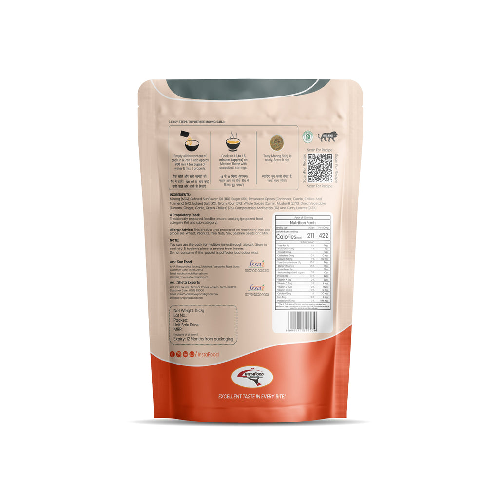 Sheta Exports Moong Sabji – 150 gms | After Cooking Gets 700 gms to Serve | Ready To Eat