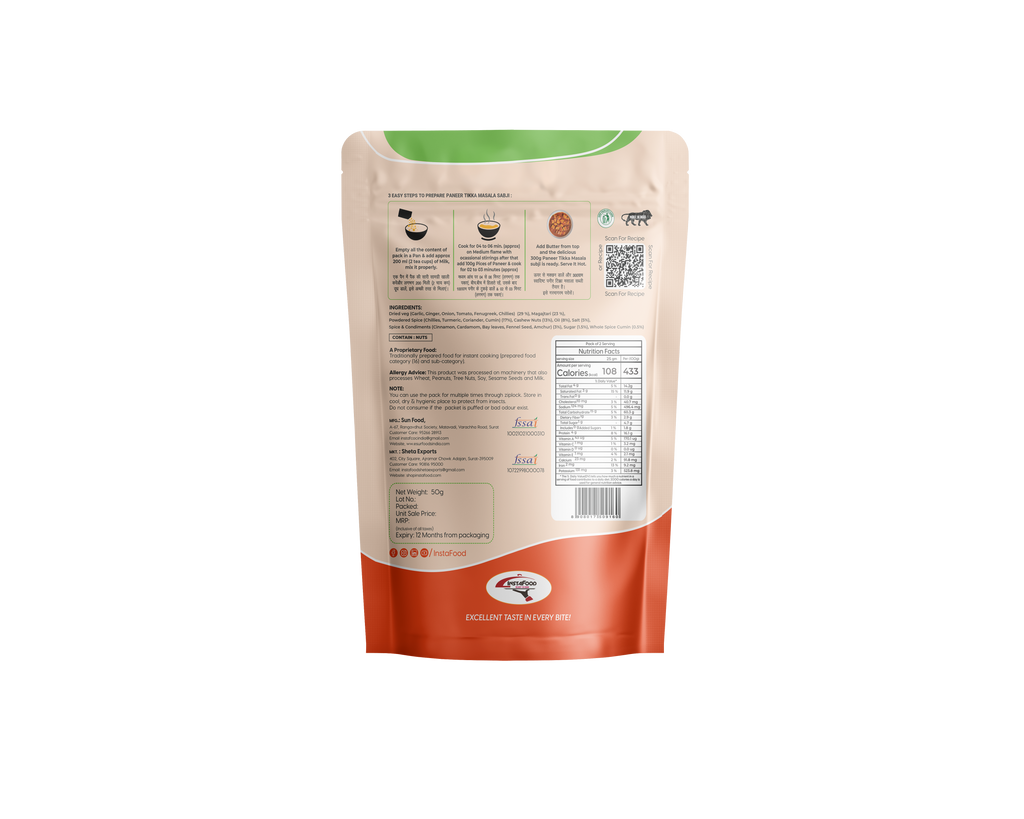 Sheta Exports Panner Tikka Masala - 50 gms | After Cooking Gets 300 gms to Serve | Ready To Eat