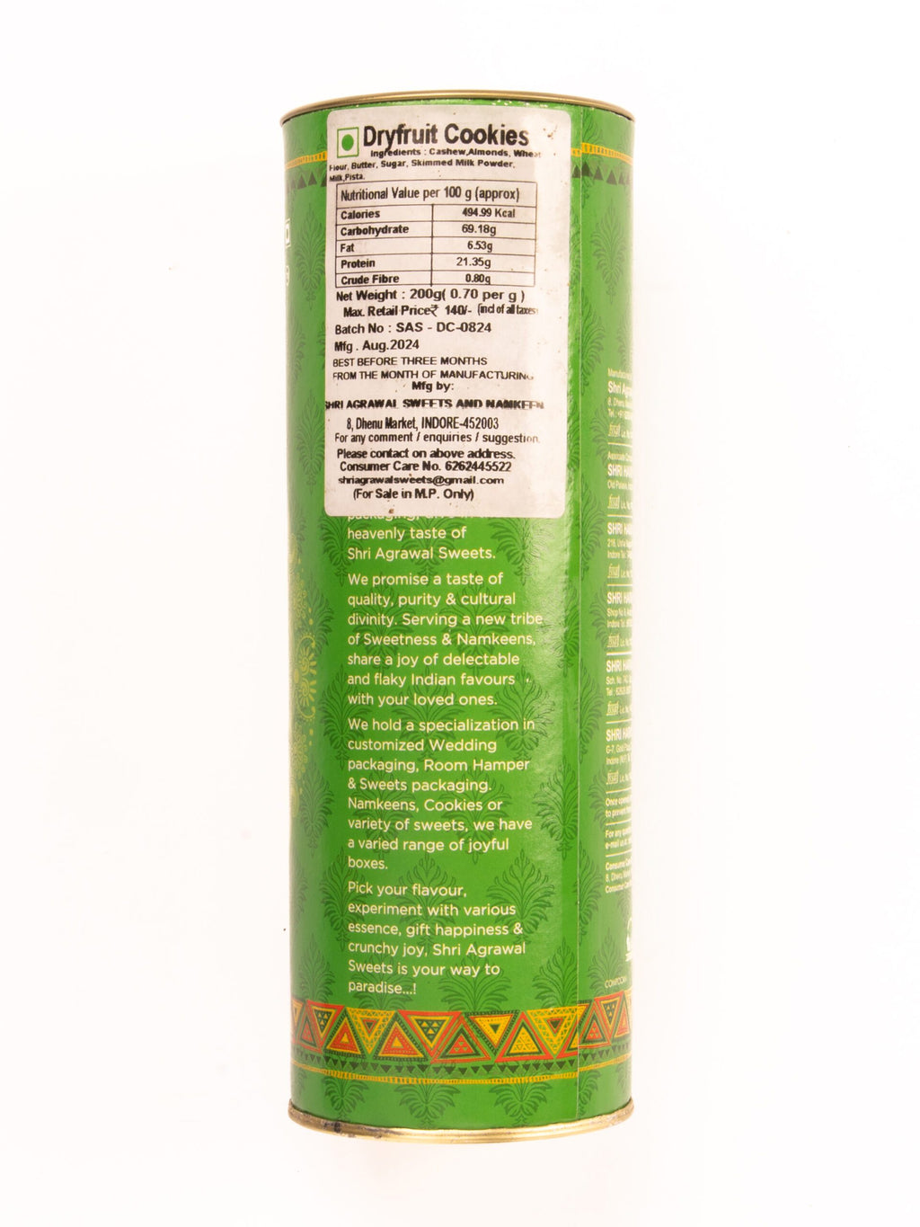 Shri Agrawal Sweets & Namkeen Dryfruit Cookies – 200 gms pack delivers a premium blend of crunchy dry fruits and rich flavors. Crafted with quality ingredients, these cookies offer a crisp texture and authentic taste, making them perfect for tea-time, festive gatherings, or anytime snacking. A wholesome and satisfying treat for every occasion.