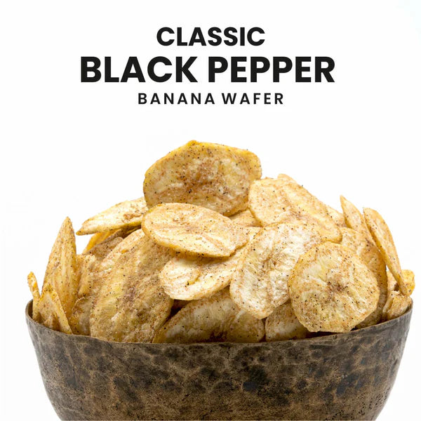 Banana black pepper wafer is a unique and flavorful variation of wafer chips that combines the little sweetness of bananas with the spicy kick of black pepper. It is a snack that offers a delightful balance of contrasting tastes. he natural sweetness of the bananas is complemented by the subtle heat and bold flavor of black pepper, resulting in a unique and memorable snack.