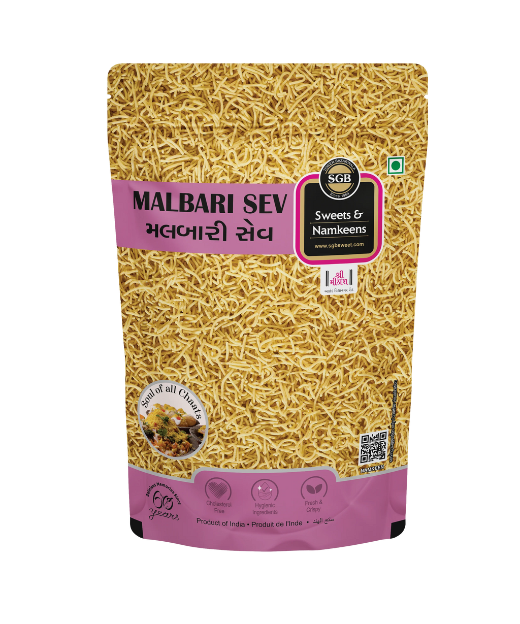 Sukhadia Garbaddas Bapuji Malbari Sev, available in a 250-gram pack, is expertly prepared to deliver the authentic taste and delicate texture characteristic of this traditional snack. Crafted with premium ingredients and traditional techniques, it offers a crisp, flavorful experience that reflects genuine regional culinary expertise, ideal for discerning snack lovers.