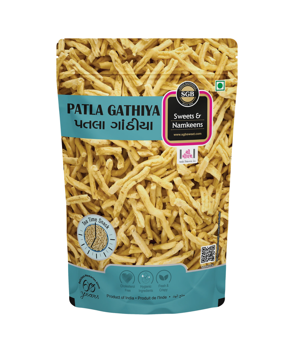 Sukhadia Garbaddas Bapuji Patla Gathiya, offered in a 250-gram pack, is expertly prepared to deliver the authentic taste and delicate texture of this traditional snack. Crafted with precision and quality ingredients, it provides a crisp yet tender bite, ideal for connoisseurs seeking genuine regional flavors with consistent excellence.