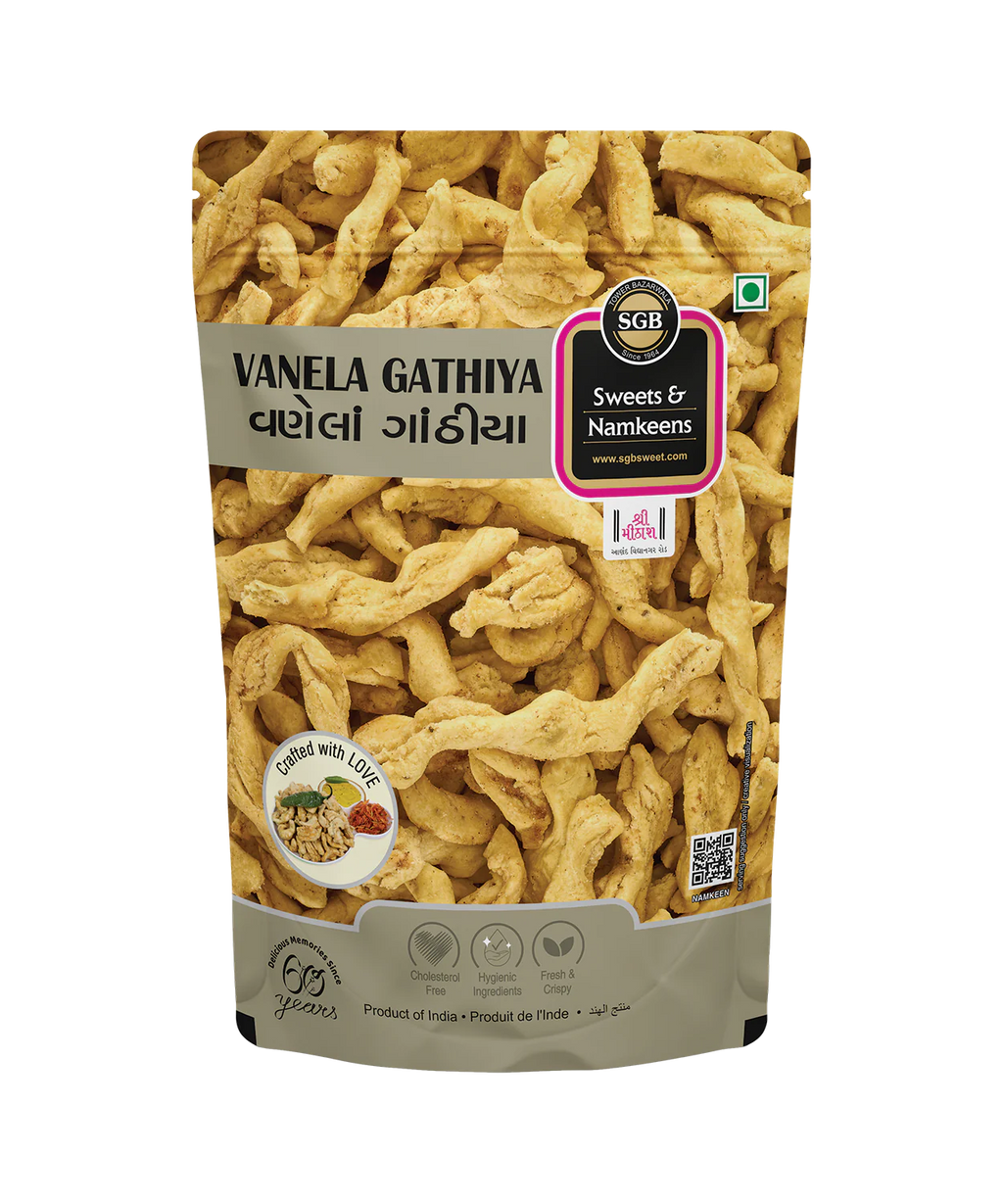 Sukhadia Garbaddas Bapuji Vanela Gathiya, packaged in 250 grams, is expertly prepared to deliver the authentic taste and texture of this traditional snack. Made with premium ingredients and crafted using time-honored methods, it offers a crisp, flavorful experience that reflects genuine regional culinary expertise, perfect for discerning snack enthusiasts.