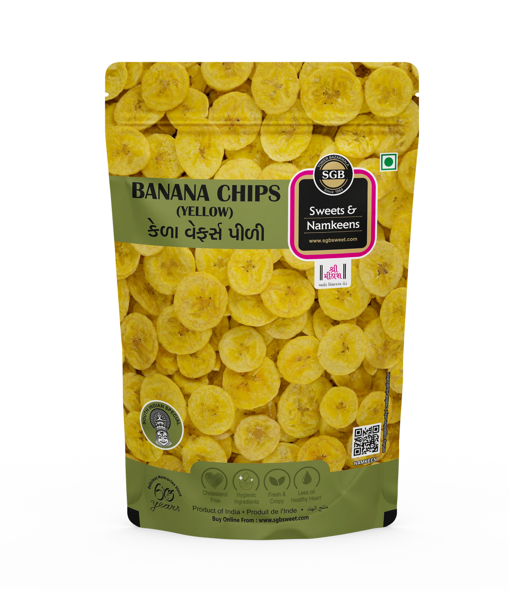 Sukhadia Garbaddas Bapuji Yellow Banana Chips, packaged in 250 grams, are expertly crafted to deliver a crisp and flavorful snack made from premium quality bananas. Carefully prepared using traditional methods, these chips offer a natural sweetness and satisfying crunch, ideal for those seeking an authentic and high-quality regional delicacy.