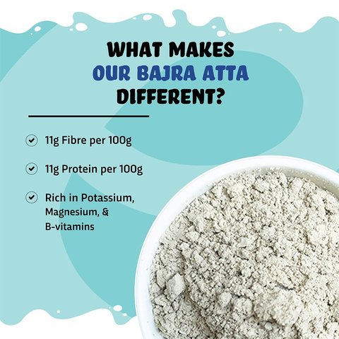 True Elements Bajra Atta the wholesome choice that transforms your everyday cooking. Made from 100% whole Bajra grains, this Millet atta goes beyond ordinary flours. Our Bajra flour is packed with essential nutrients & dietary fibre, which supports overall well-being and promotes digestion. Experience the digestive ease that comes with True Elements Millet Flour.