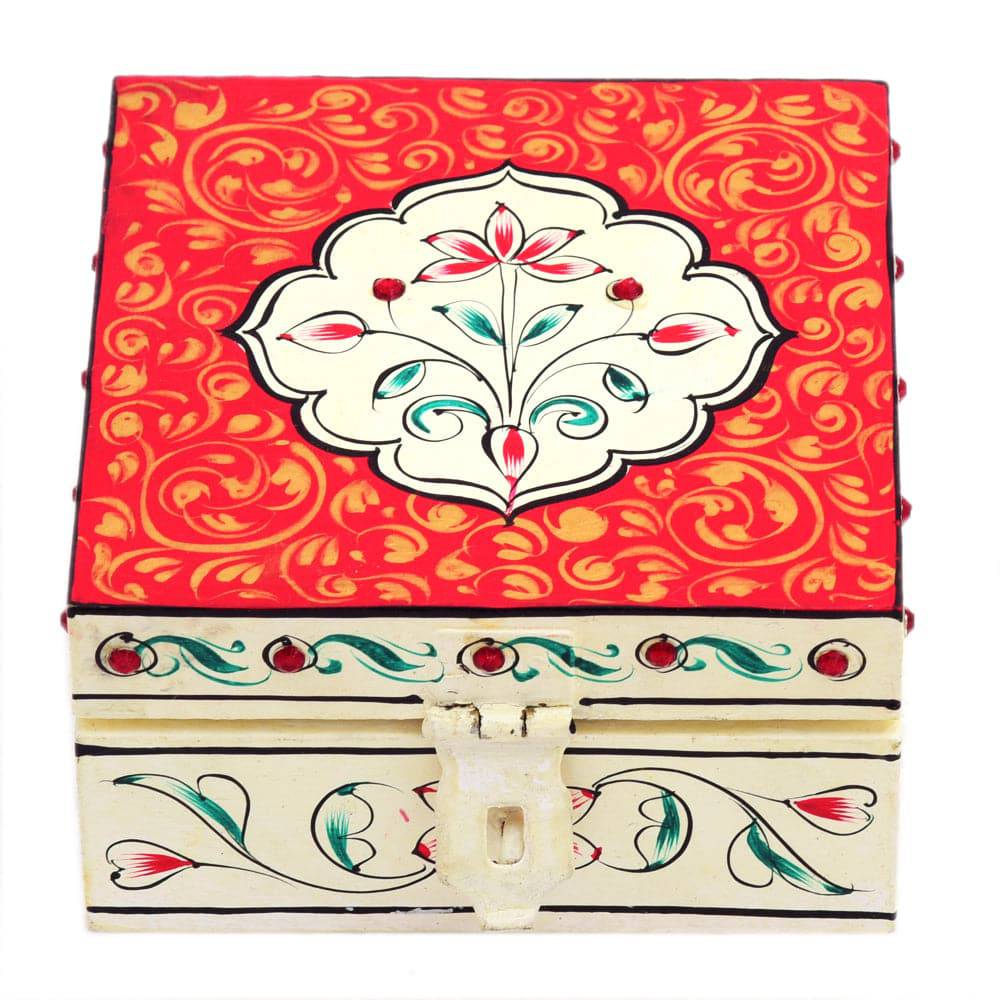 Hand painted square box : Elegant white