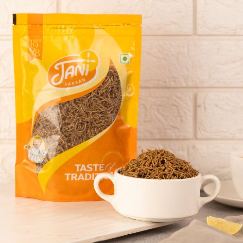 Ingredients - Chickpea Flour, Edible Refined Palmolein Oil, Jiralu Powder, Iodized Salt, Black Pepper Powder, Ratlami Chilli Powder, Acidity Regulator (E-330)