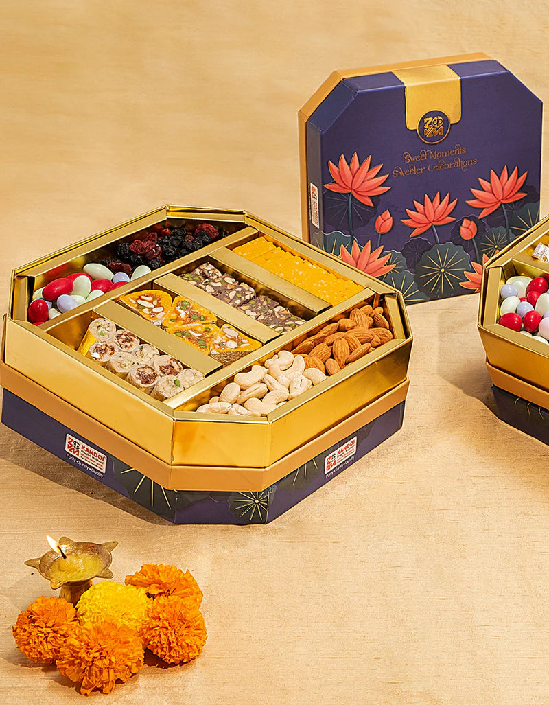 Experience the delightful combination of dryfruits and sweets with Kandoi Bhogilal Mulchand's special Dryfruit Sweets Box. This unique blend of sweet and nutty captures the essence of India's culinary heritage. Whether you're enjoying it as a snack or a special treat, this box is the perfect choice for those who appreciate the fusion of flavors. The sweets offer a delightful sweetness, while the dryfruits provide a nutty and wholesome contrast. Satisfy your cravings for a mix of flavors and textures with Kandoi Bhogilal Mulchand. Order now to enjoy the delightful blend of dryfruits and sweets in every bite.