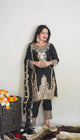 Designer Collection In Pure Chinnon With Heavy Embroidery Sequence Work Top-Bottom And Dupatta Set Fully Stitched