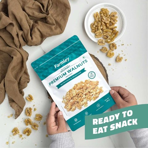 Farmley, sources all the nuts & dry fruits directly from the farms which are hygienically packed in a HACCP-certified unit. Walnuts are an excellent source of antioxidants that are good for health. These walnuts are a good source of vegan omega-3 fat, which helps reduce heart disease risk. Our unadulterated walnuts contain beneficial bacteria that improve gut health.
