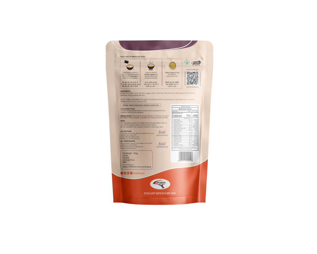 Sheta Exports Dal Dhokli – 120 gms | After Cooking Gets 750 gms to Serve | Ready To Eat