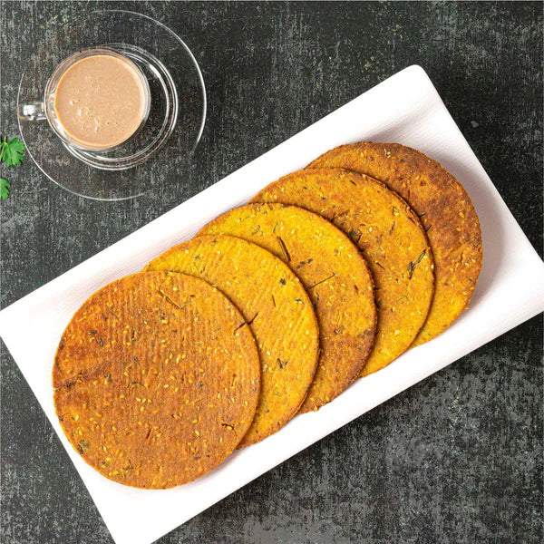 Stuti Kothmir Marcha Rotla is a traditional Gujarati snack that brings together the aromatic freshness of coriander (kothmir) and the bold heat of green chilies (marcha). Crafted with care, this rotla offers a delightful balance of flavors, making it a perfect accompaniment to your tea or as a standalone snack.