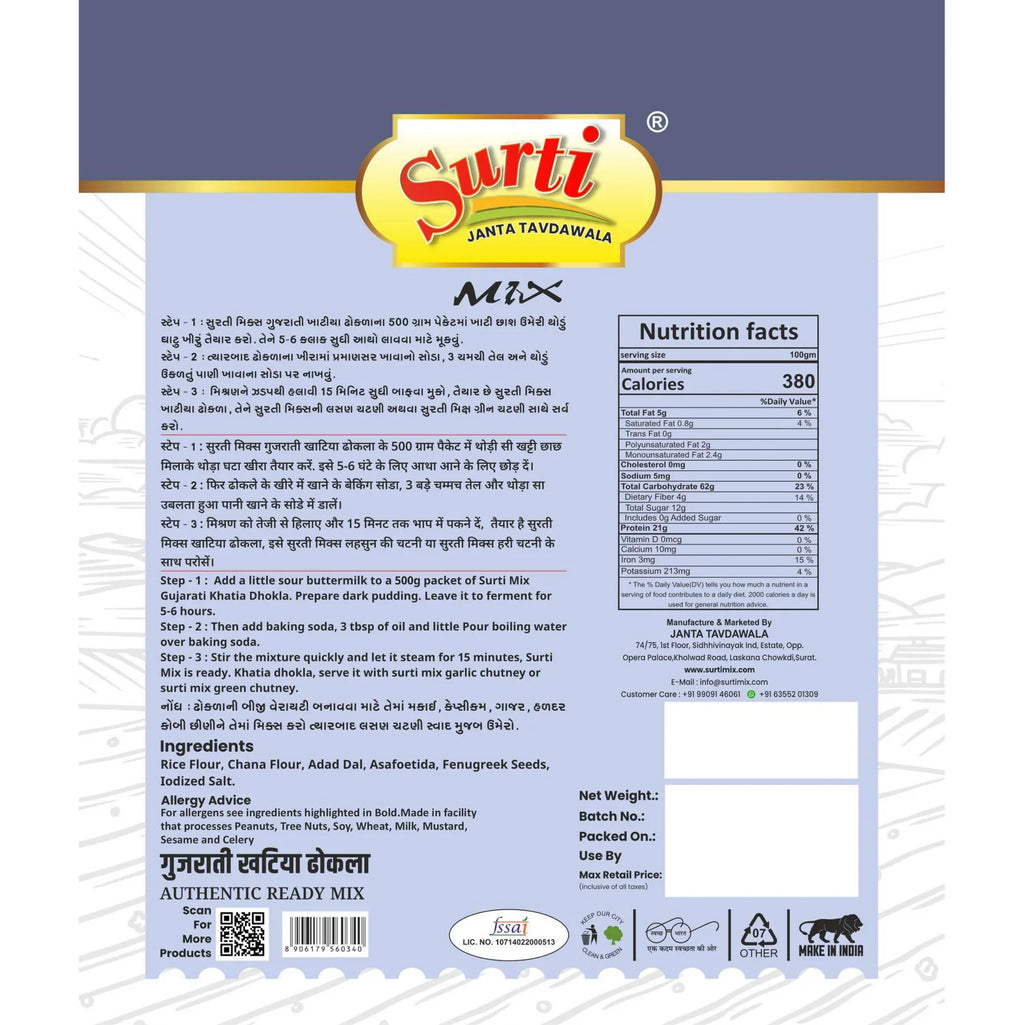 Surtimix Gujarati Khatiya Dhokla Aata | Ready To Eat 500 gms