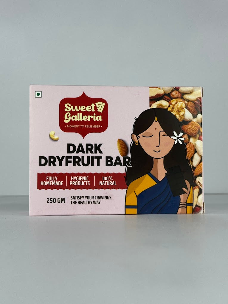 Indulge in a delicious treat with our Sweet Galleria Dark Dryfruit Chocolate Bar. Made with 250 gms of rich, dark chocolate and a decadent blend of dried fruits, this bar offers a perfect balance of sweetness and nutrition. Satisfy your cravings with every bite, guilt-free. Pure Homemade Chocolate Bar.