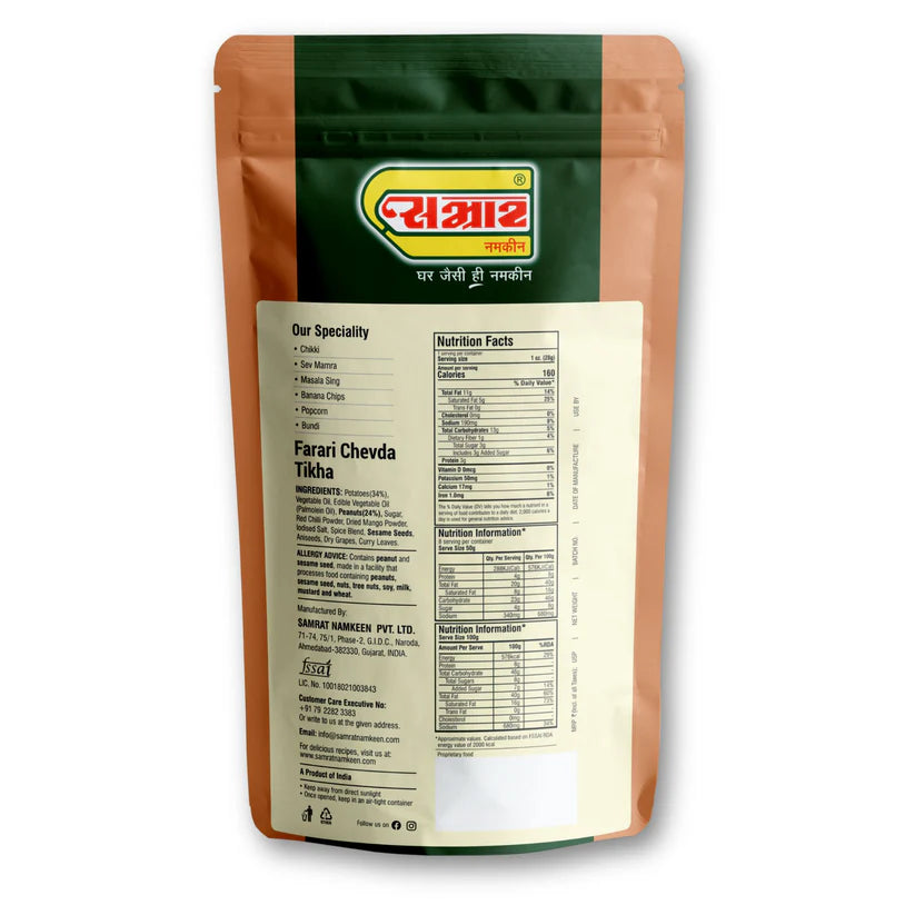 Made with premium ingredients and free from gluten and cholesterol, Samrat Farari Chevda Tikha is a guilt-free snack option that’s perfect for festive gifting during Diwali, Raksha Bandhan, or simply satisfying your spicy snack cravings at home.