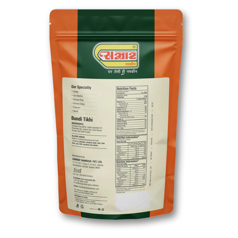 Add some spice to your snack game with Samrat Bundi Tikhi—those tiny, fiery boondi balls that pack a punch of flavour in every bite. Light, crispy, and bursting with traditional Indian masala, they’re the perfect way to bring a chatpata twist to your everyday meals and snacks.