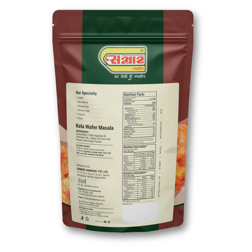 Whether you’re unwinding with a warm cup of chai, grabbing a quick evening bite, or satisfying those midnight munchies, these chips are the perfect companion. They’re great for family get-togethers, parties, picnics, or festive celebrations like Diwali and Raksha Bandhan. Made the traditional way, Samrat Kela Wafer Masala brings that comforting homemade taste you’ll love in every bite.