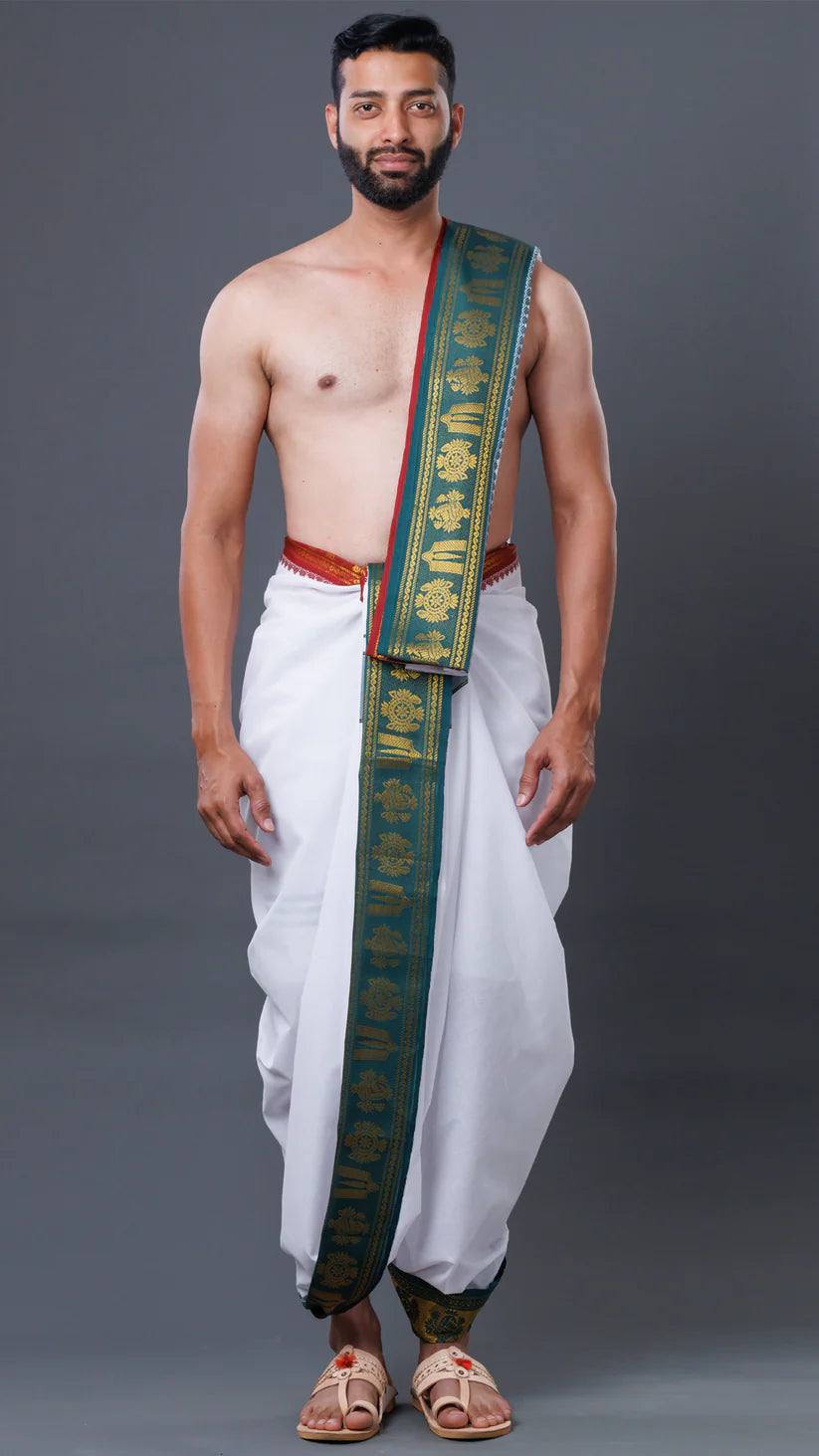 • Design: Traditional Tilak border that adds a vibrant contrast and enhances the dhoti’s appeal